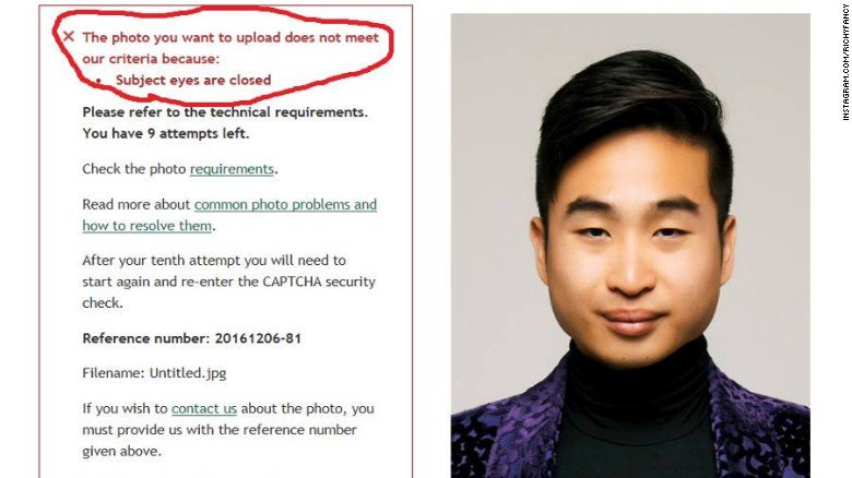 والمثال الثاني: روبوت (نظام) الجوازات في نيوزيلندا المخصص لاستقبال طلبات المتقدمين اونلاين يرفض طلب شاب آسيوي لانه مغلق عينيه! هنا التفاصيل